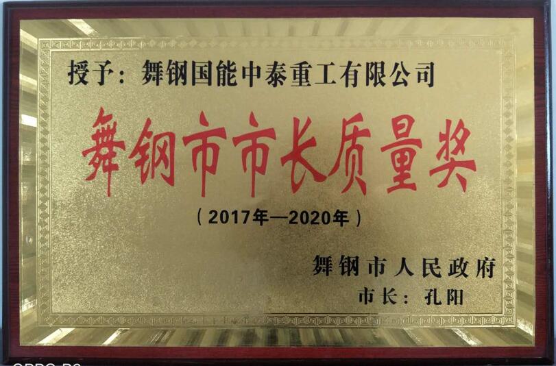熱烈祝賀:舞鋼國(guó)能中泰重工有限公司被舞鋼市人民政府授予2017年度“舞鋼市市長(zhǎng)質(zhì)量獎(jiǎng)”